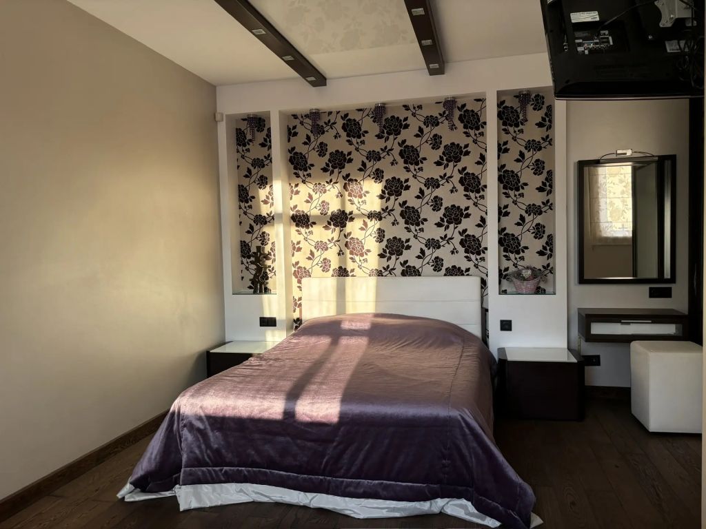 Большая лоджия, выходящая из спальни может использоваться как кабинет, спортивная зона или зимний сад, так как имеется отопление.