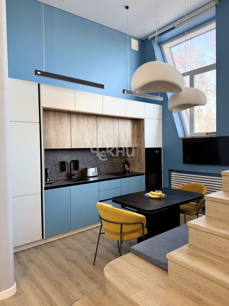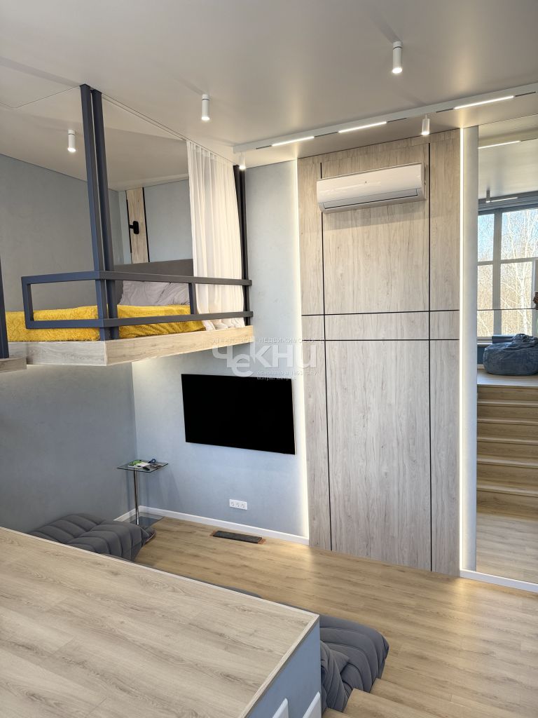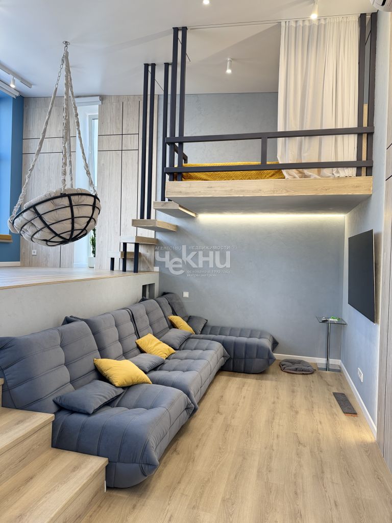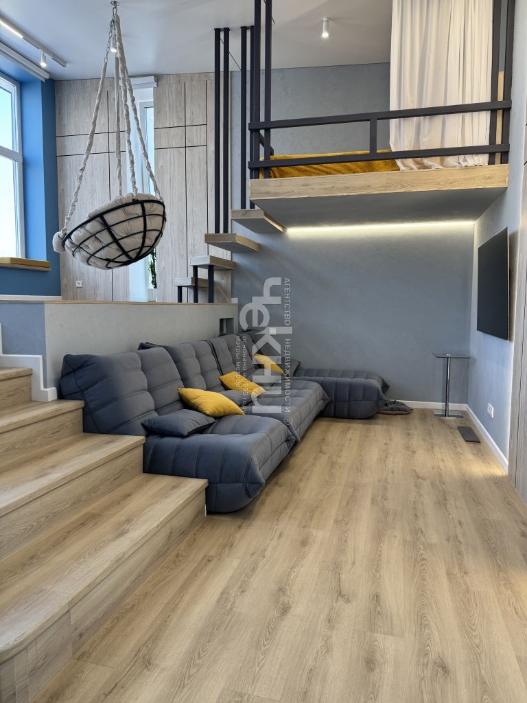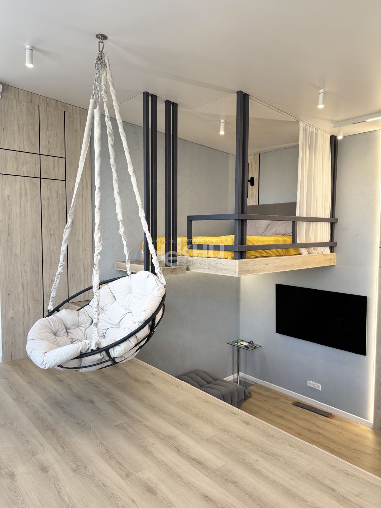 Квартира состоит из просторной кухни-гостиной с зоной отдыха и парящей кроватью, функциональной гардеробной, постирочной, уборной.