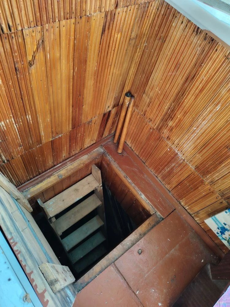 Санузел совмещённый, небольшая застеклённая лоджия с погребом,