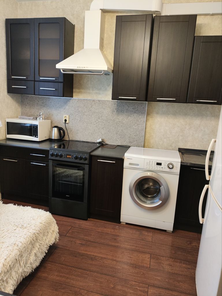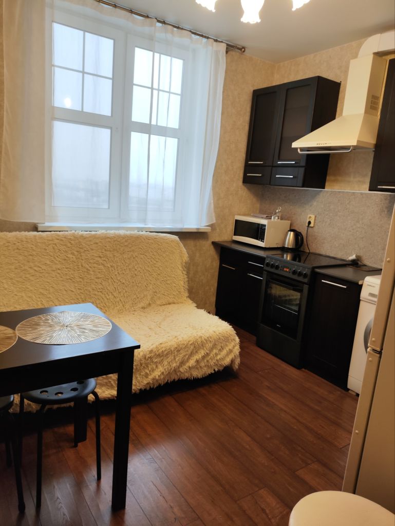 Квартира находится на 11 этаже 16 этажного монолитного дома. Общей площадью 38 кв.м, из них жилая 18,3 + кухня 10.2 кв.м.