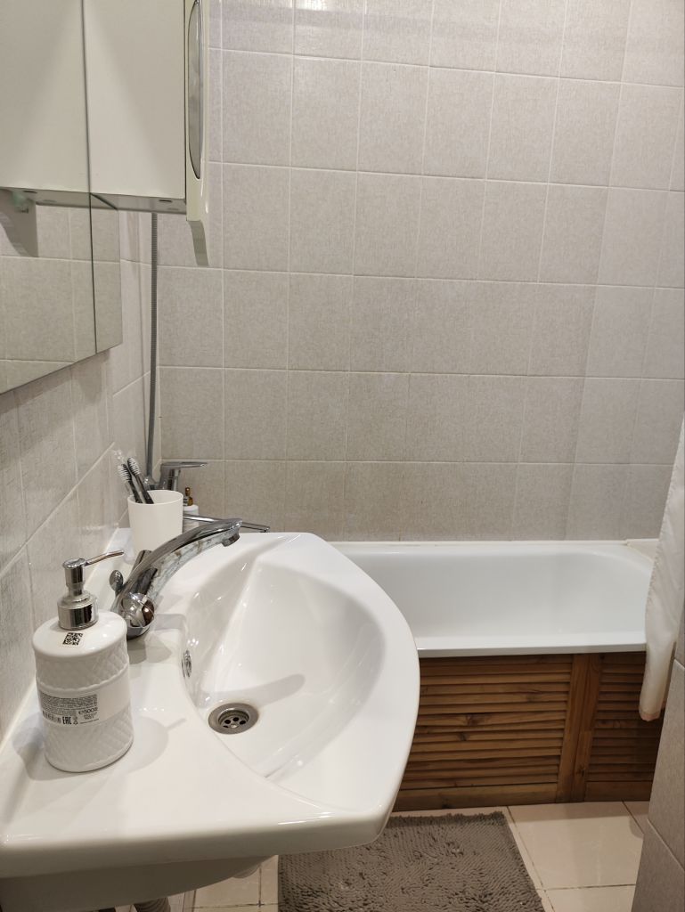Сан. Узел совмещён, и очень удобно разделён на зоны, что даёт широкие возможности для его устройства (установка душевой кабины, сауны) без ущерба по фунционалу ванной комнаты.