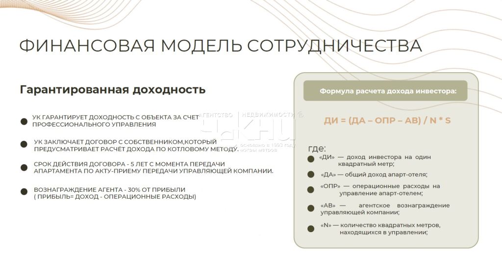 Можно заключить договор с управляющей компанией и арендный бизнес будет полностью автономен (поиск арендаторов, уборка). Распределение доходов по принципу "котлована".
